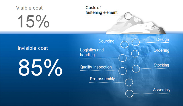 Beyond the initial cost of the fastener, the hidden cost of the entire fastening ecosystem of development, procurement, testing, inventories, assembly and logistics make up 85% of your Total Cost of Ownership in C-part inventory.