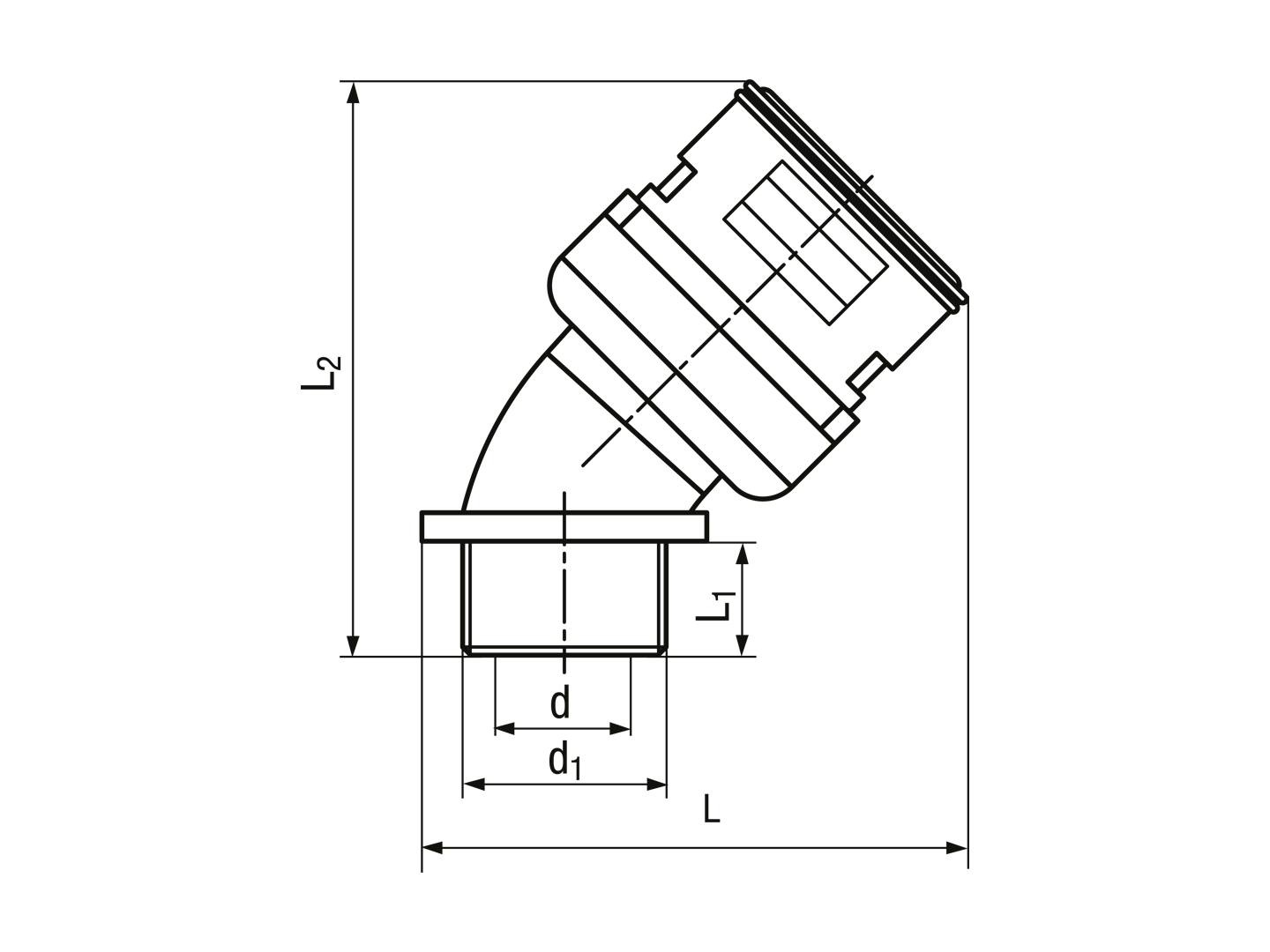 REIKU® VP ARG, Pg - Arched elbows 45° with integrated seal and male thread