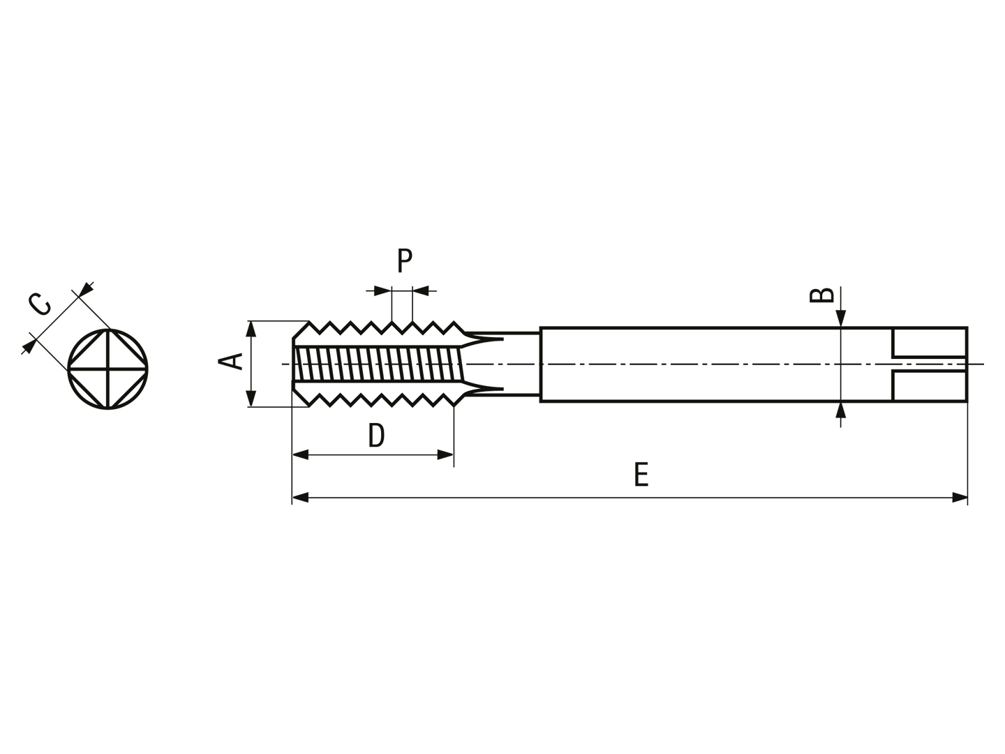 DescriptionProduct featuresSingle-cut tap Straight groove With entry on 4 leads Additional informationSuitable for cutting threads in metal panels and thin work pieces smaller than 1.5 x thread diameter.Variants