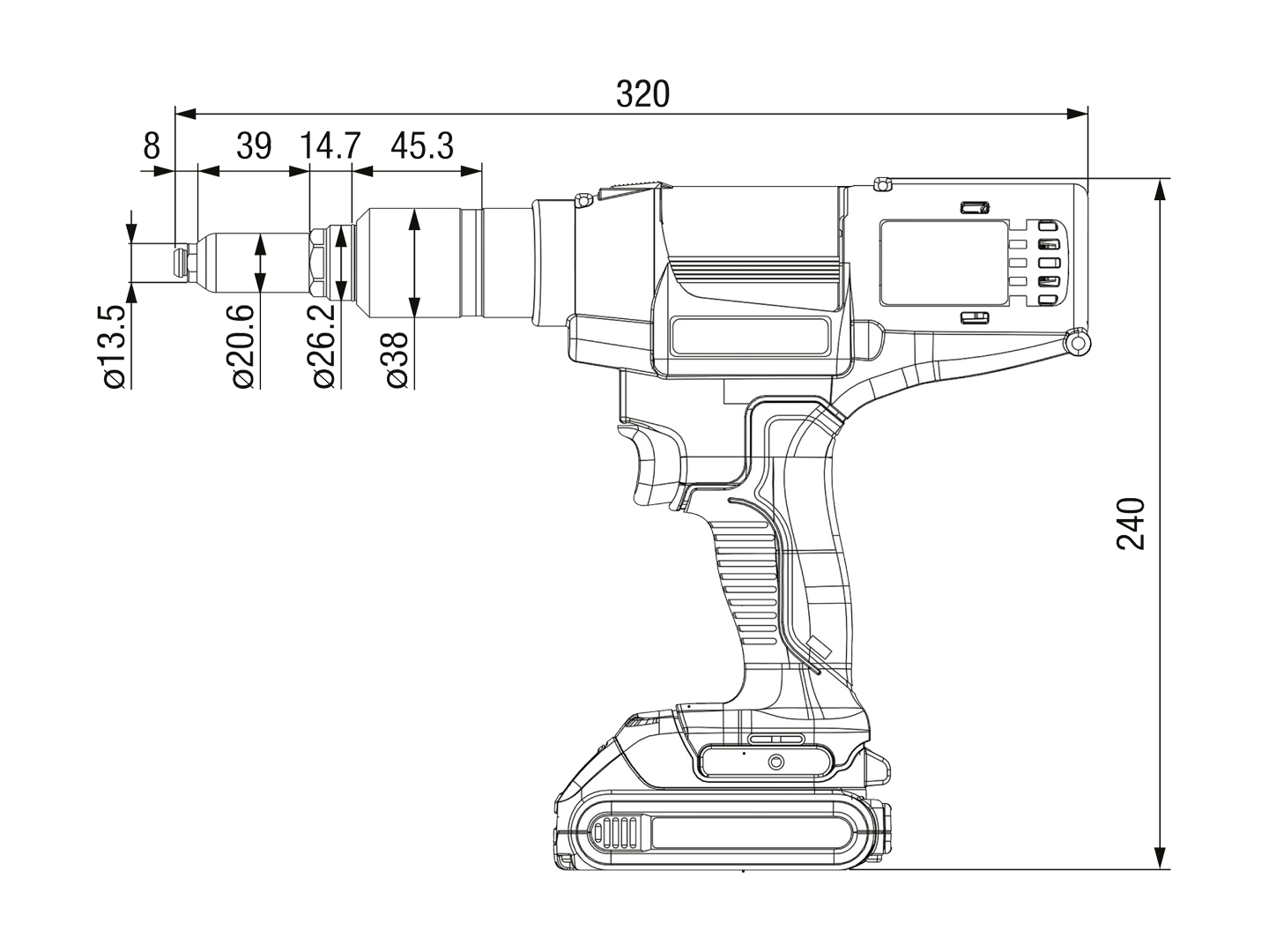 1 Battery powered blind rivet tool with nose piece ø 4,8