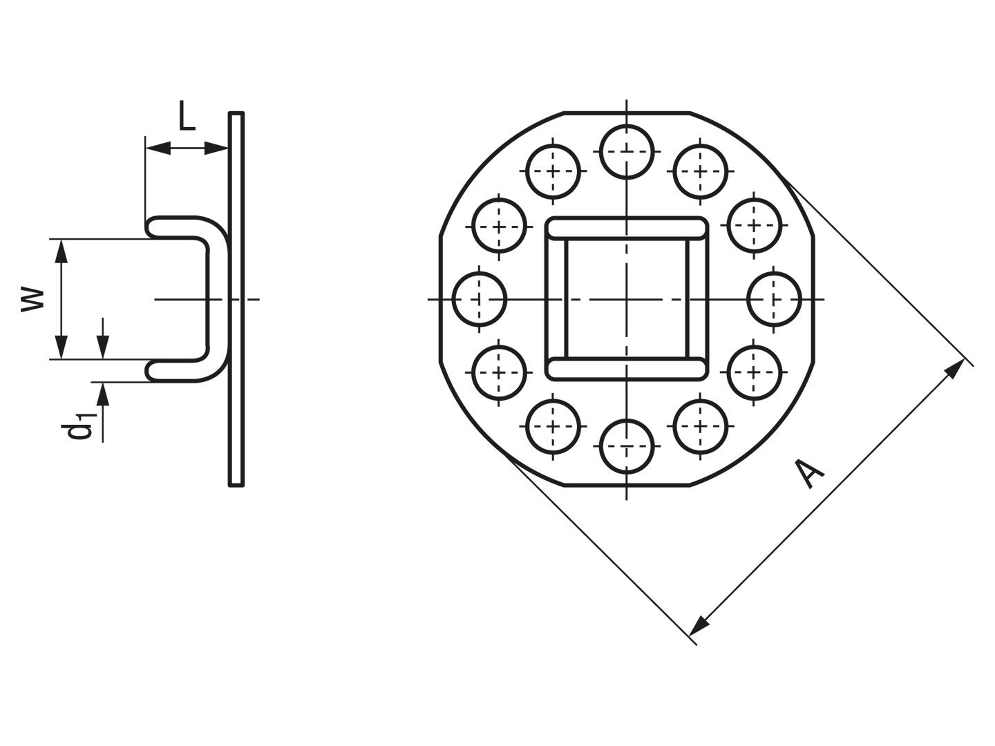 Fastener with cable tyrap rounded corner head Ø 38 mm