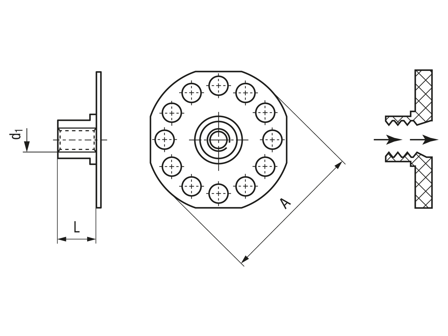 Fastener with threaded collar rounded corner head Ø 38 mm sighted