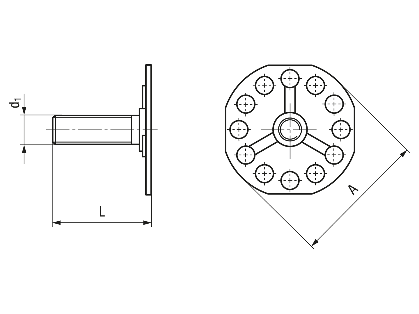 Fastener with threaded stud rounded corner head Ø 38 mm