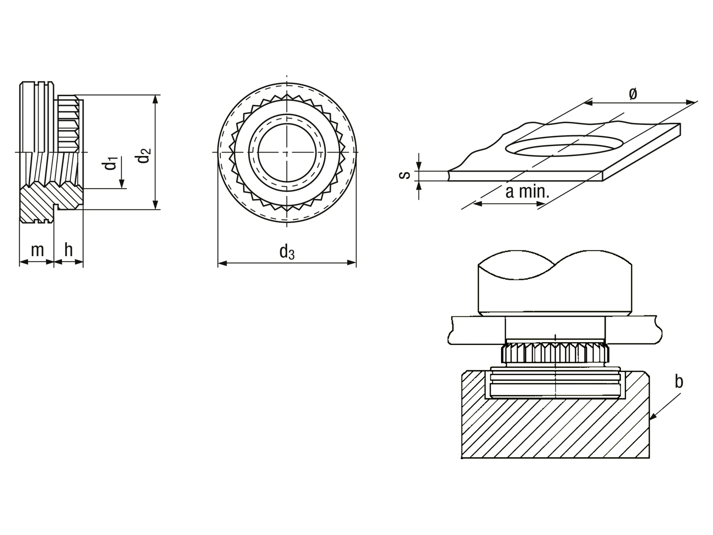 DescriptionProduct featuresFor use in sheet hardness max. HRB 70 Additional informationIn the case of through-bored holes, the borehole has to be adapted so that the final diameter corresponds to the required dimension.AssemblyVariants