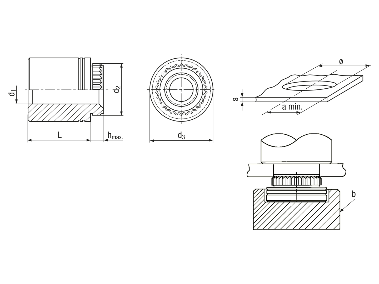 Broaching standoffs with through-hole, for PC boards and other plastics