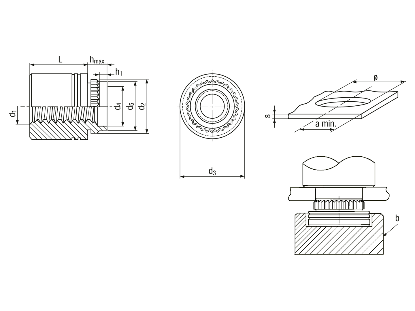 Self-clinching threaded standoffs with UNC thread, for PC boards and other plastics