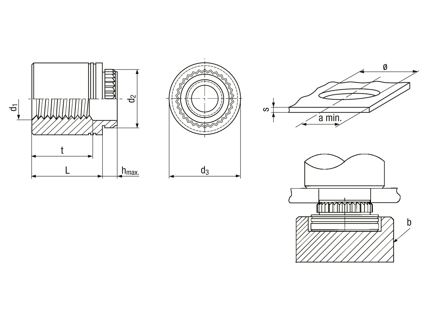 Self-clinching threaded standoffs with UNC thread, for PC boards and other plastics