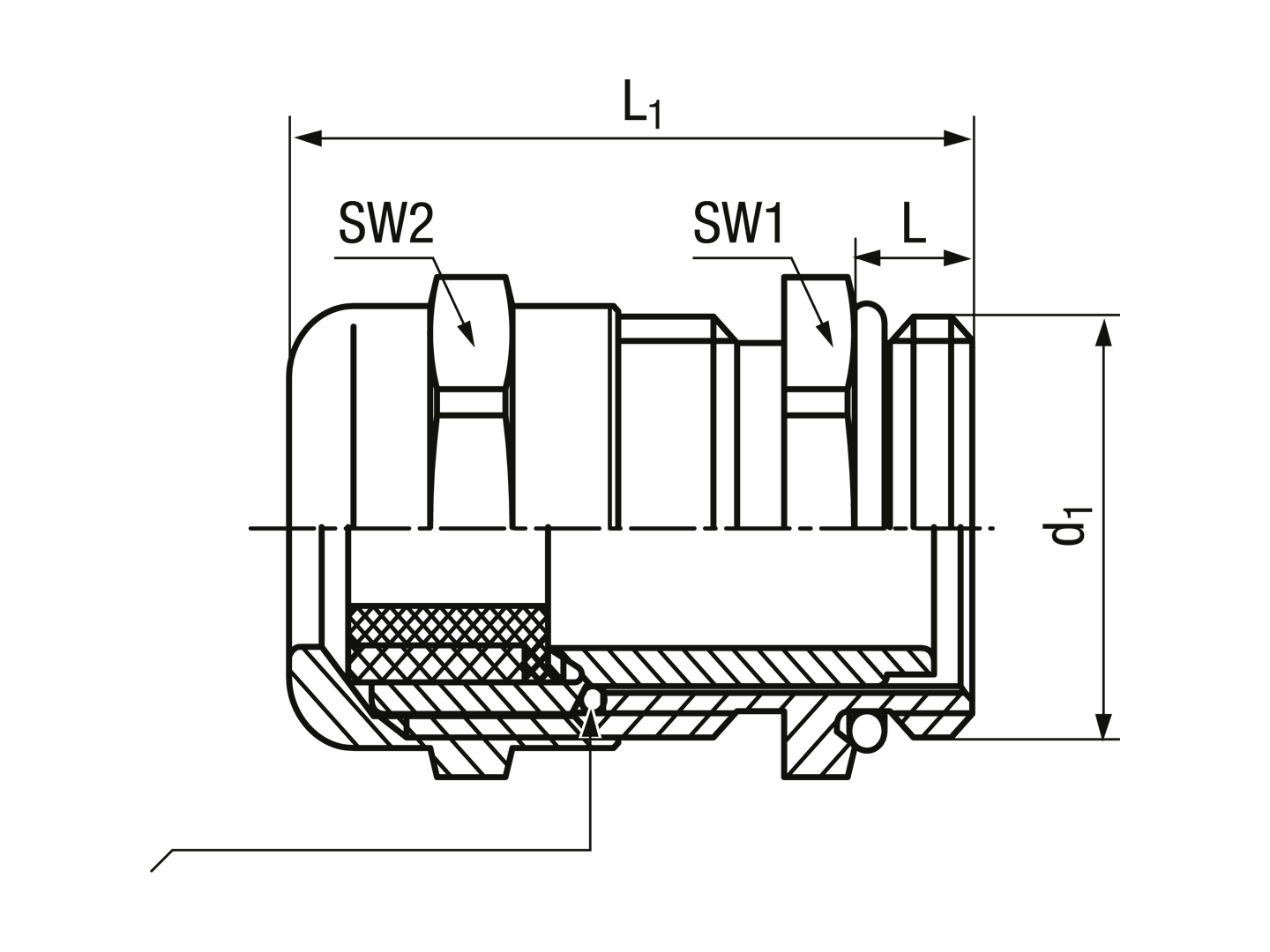 - Gland body: brass CuZn39Pb3, nickel-plated