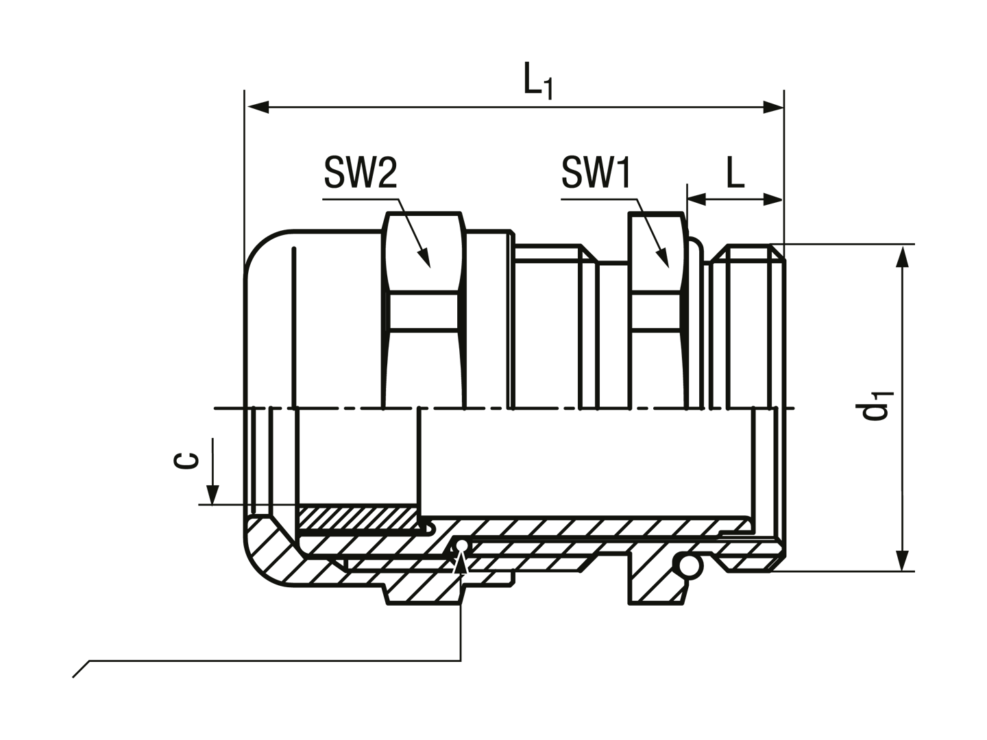 - Gland body: brass CuZn39Pb3, nickel-plated