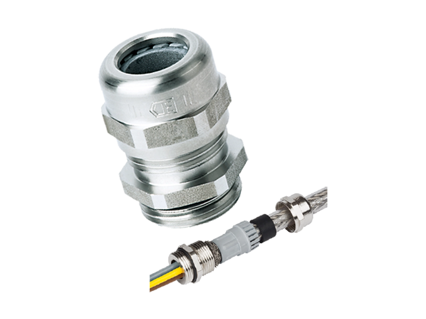 - For cables with shielding, integrated anchorage, protection against twisting, wide sealing and clamping range