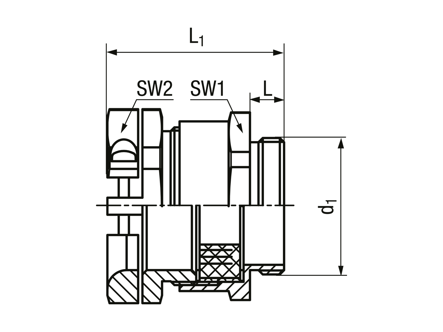 - Gland body: brass CuZn39Pb3, nickel-plated