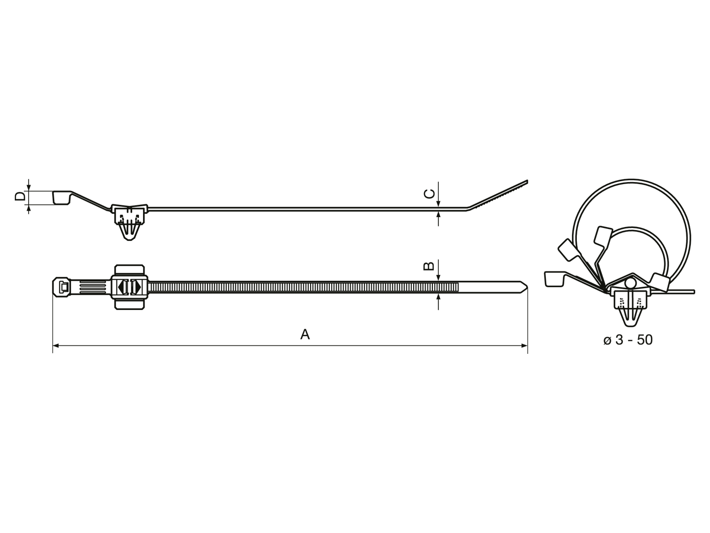 3. Wing push mount cable ties with convoluted tubing bump that prevents lateral movement on corrugated loom tubing.