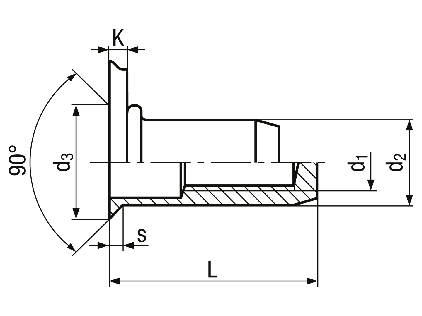 The countersunk head rivet nut requires a perfect 90° countersink.