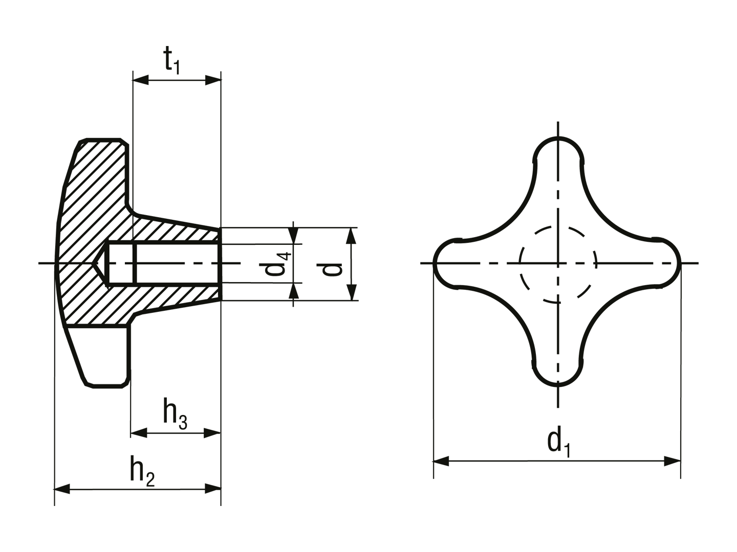 Star knobs nodular cast iron, deburred and sandblasted DIN 6335 C with reamed blind hole
