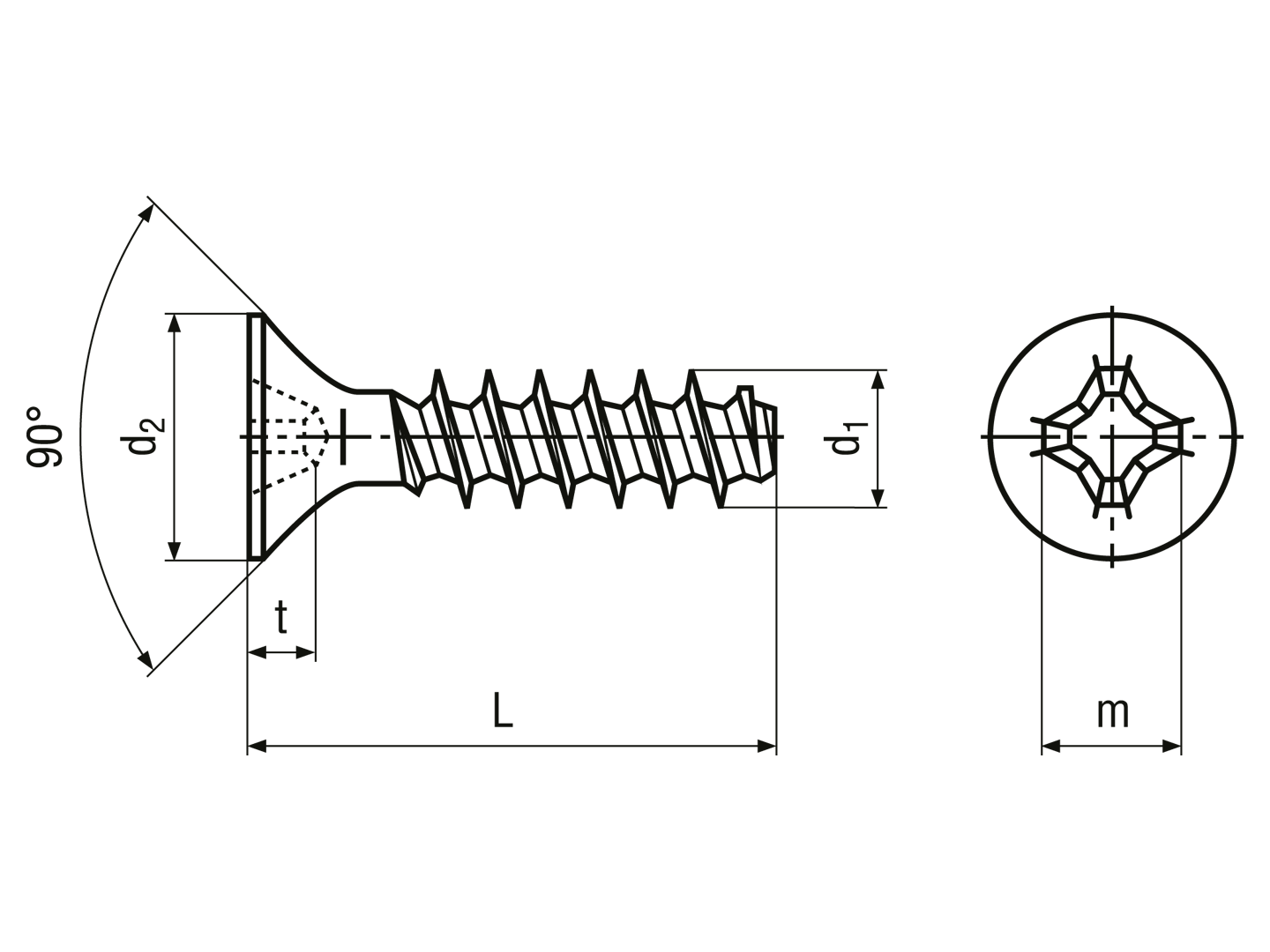 EJOT PT® - Flat countersunk head screws with Phillips cross recess form H