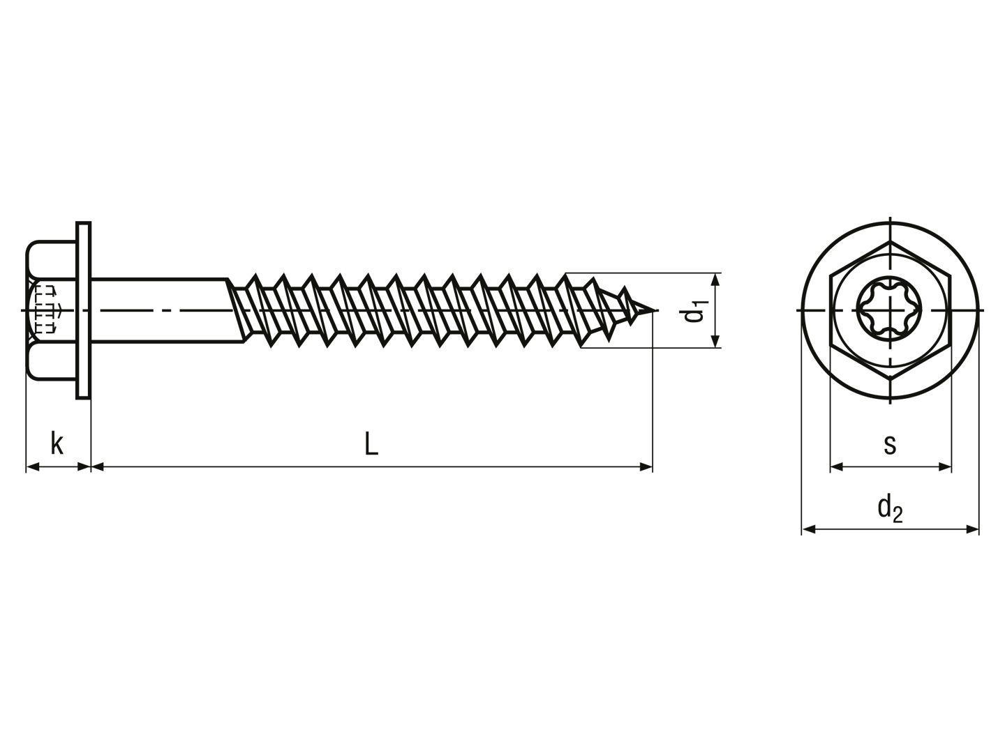 BN 54008Hex flange head wood screws with hexalobular (6 Lobe) socket