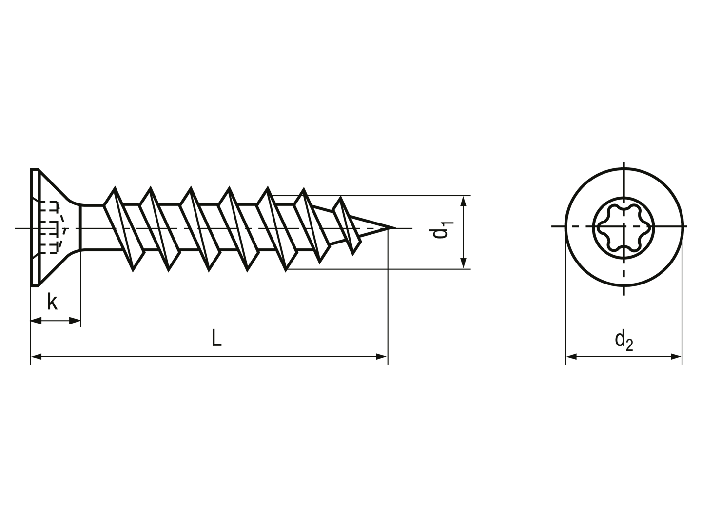 BN 33022Hexalobular (6 Lobe) socket flat head countersunk screws double neck chipboard screws, partially threadedStainless steel