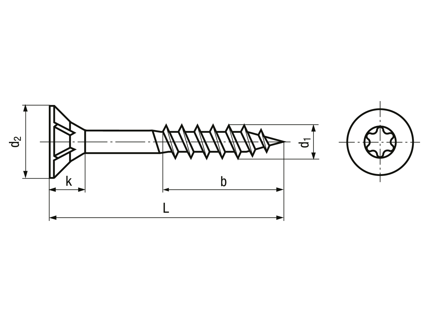 Hexalobular (6 Lobe) socket flat countersunk head partial thread and cutting ribs under the head