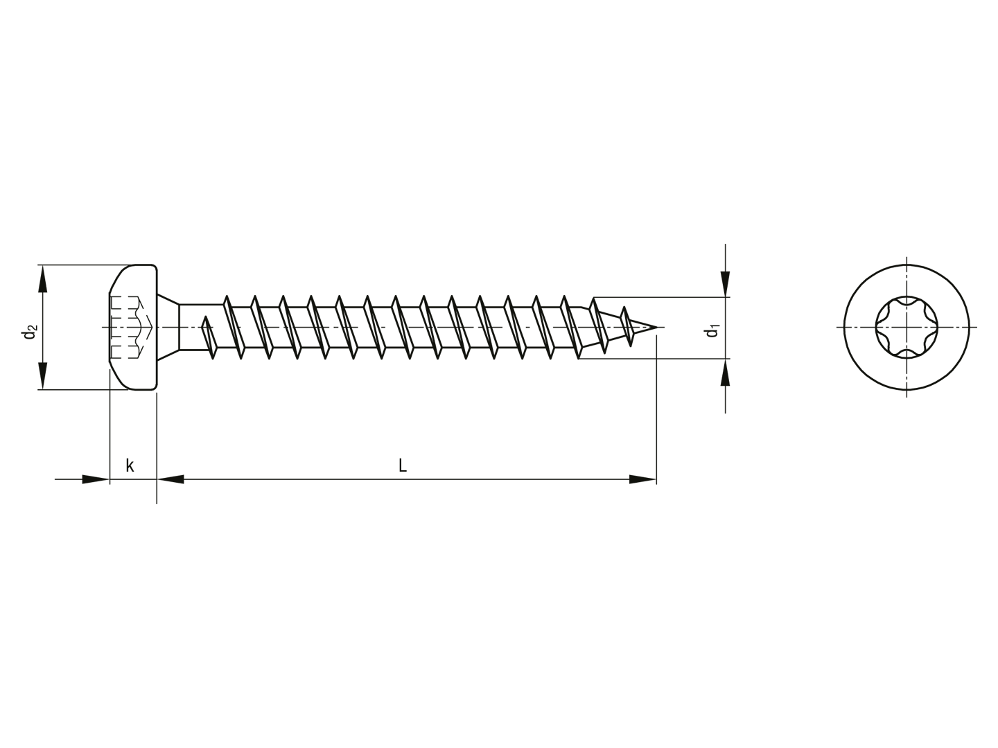 Hexalobular (6 Lobe) socket pan head chipboard screws fully threaded
