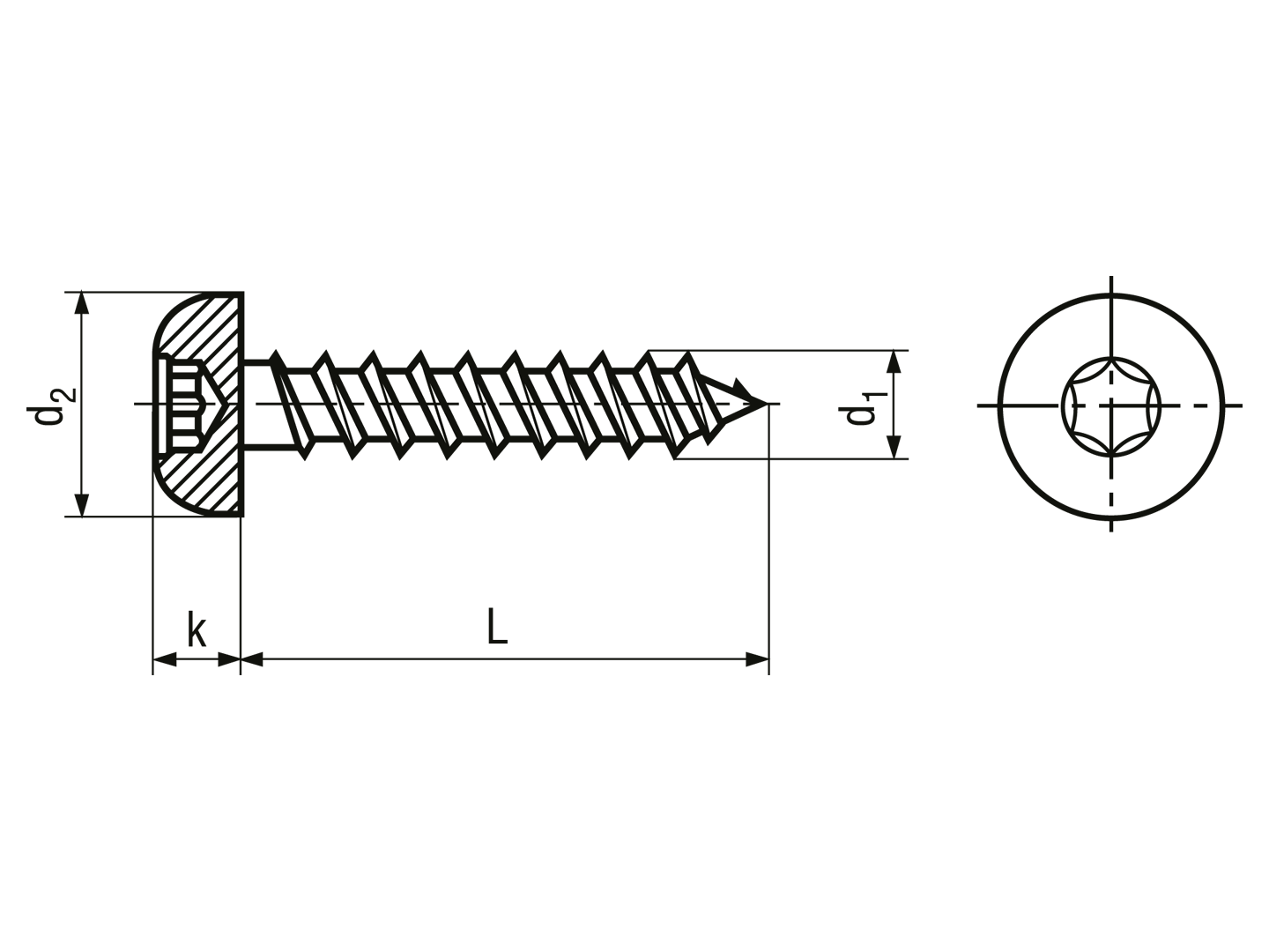 Hexalobular (6 Lobe) socket pan head chipboard screws