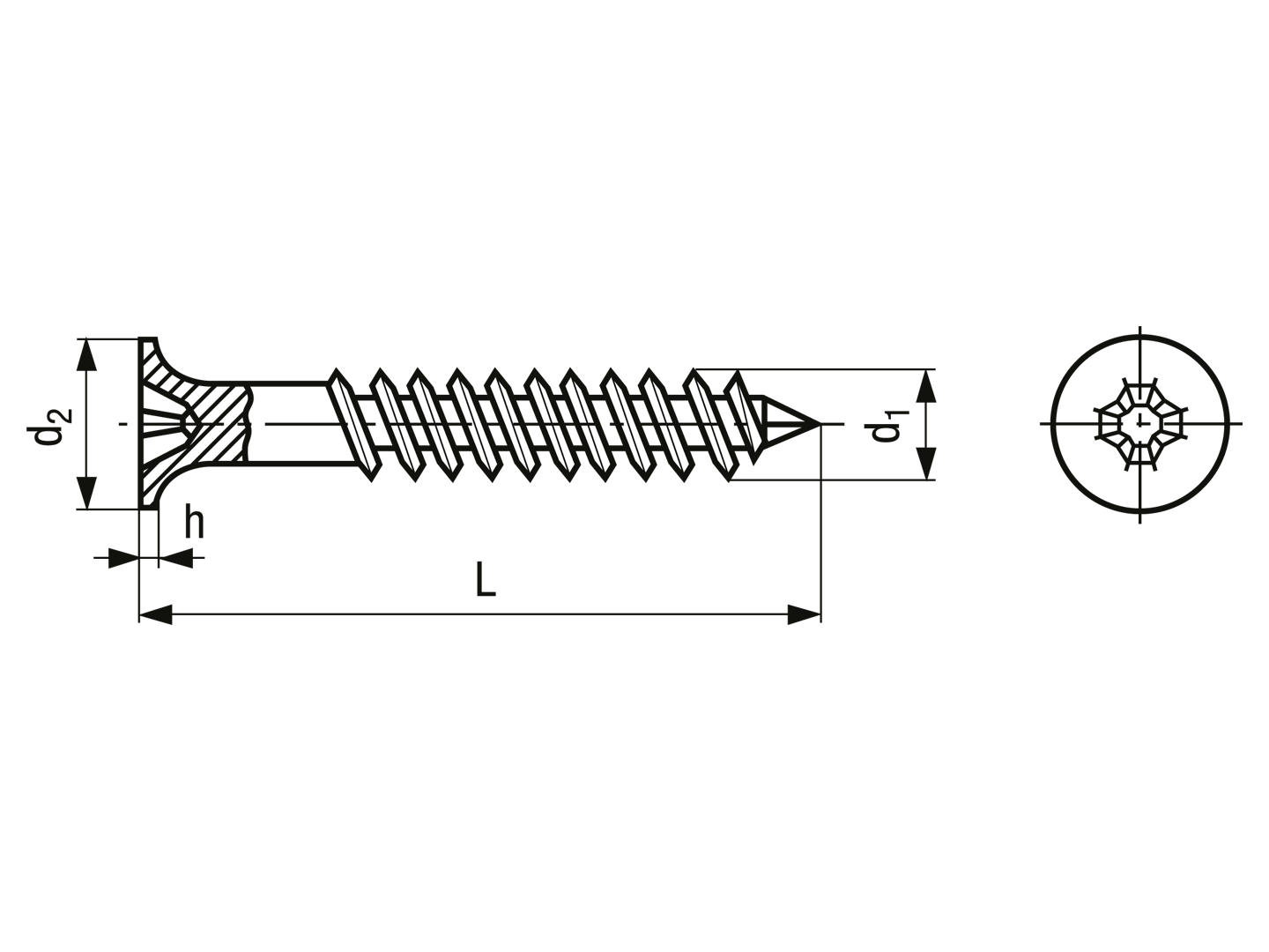 Phillips flat countersunk head drywall screws form H, double-fine thread