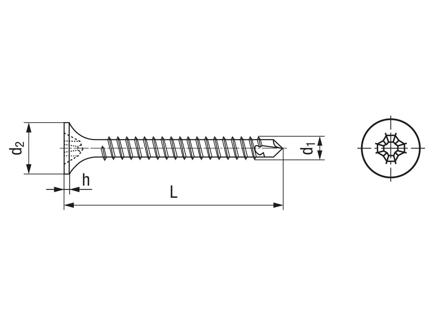 Phillips flat countersunk head drywall self-drilling screws form H, fine thread