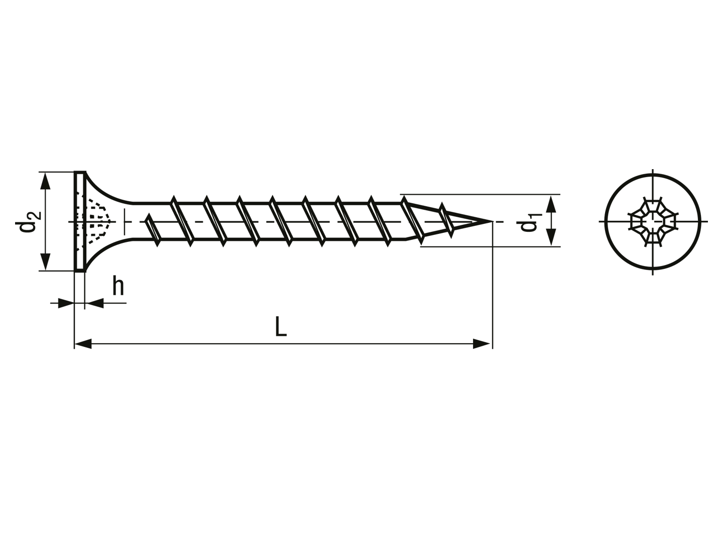 Phillips flat head countersunk drywall screws form H, with coarse thread