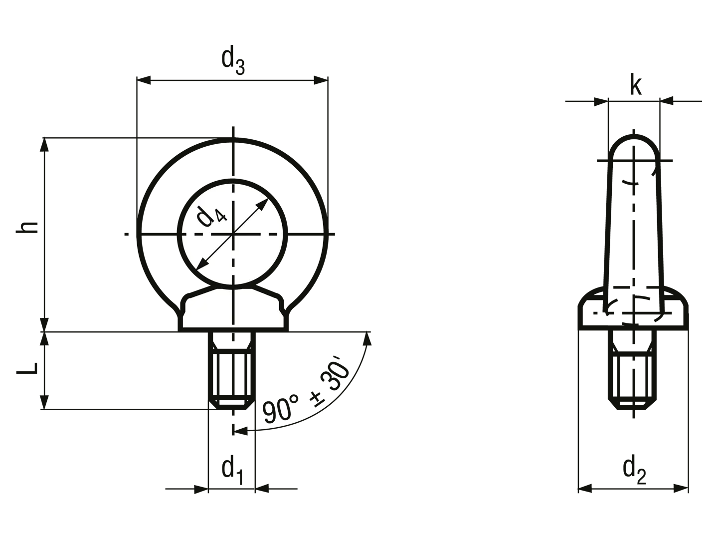Lifting eye bolts according to this specification are primarily used as static load-bearing devices for permanent attachment to the object.