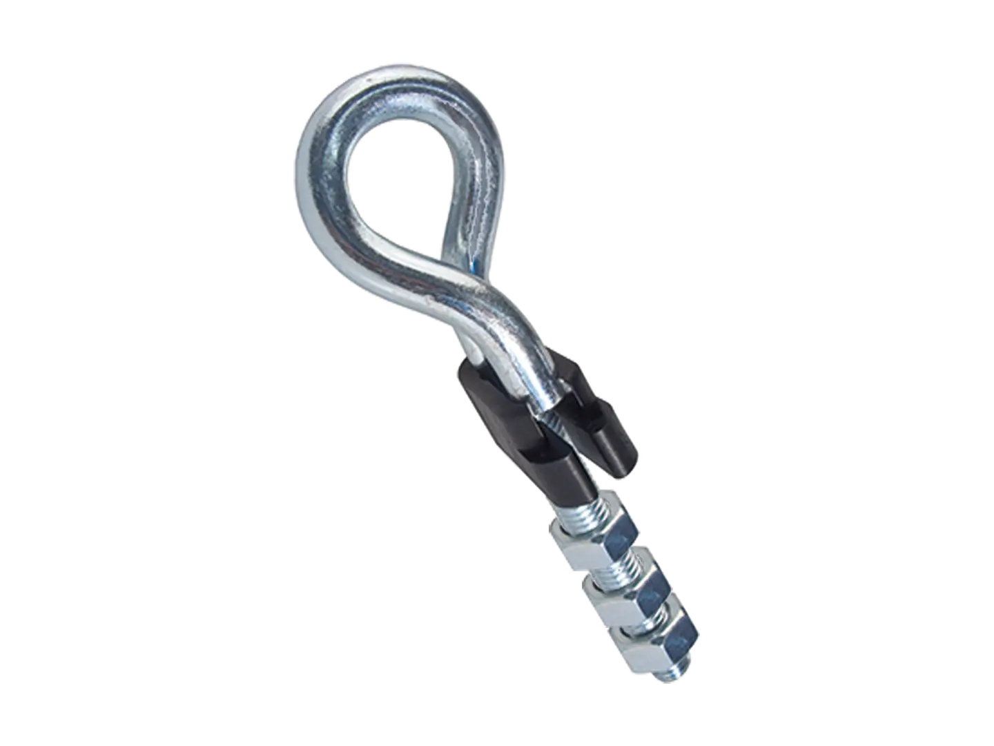 Safety hook screws for swings with 3 hex nuts and a plastic locking element