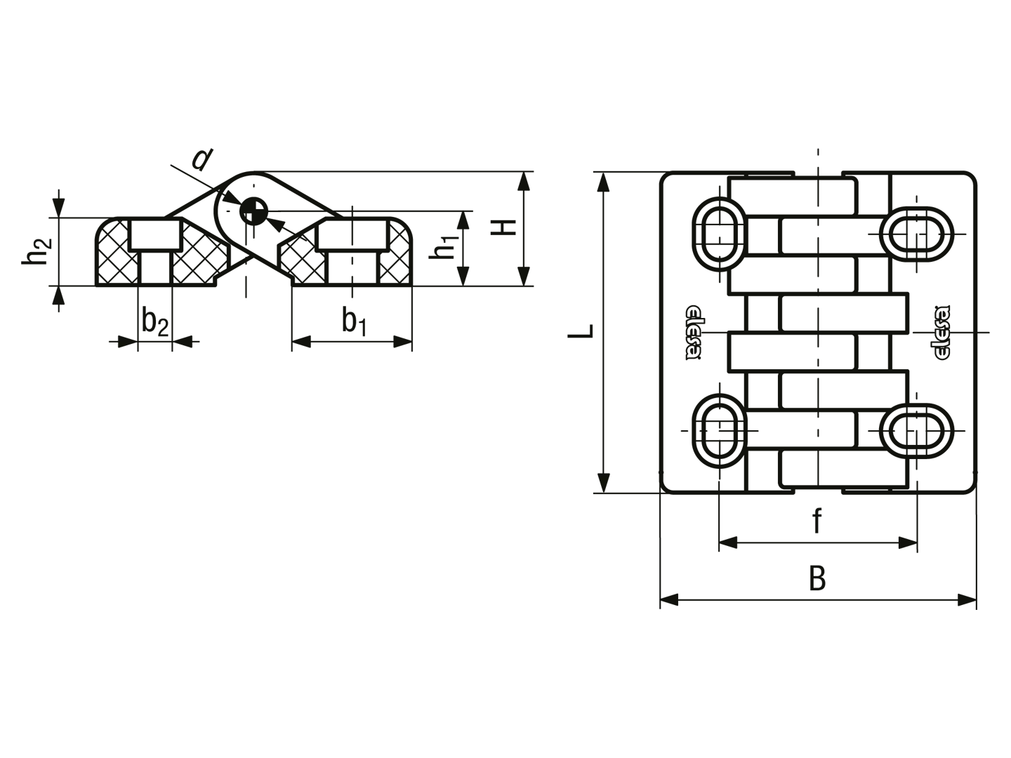 Hinges with pass-through slotted holes with slotted holes for horizontal and vertical adjustments