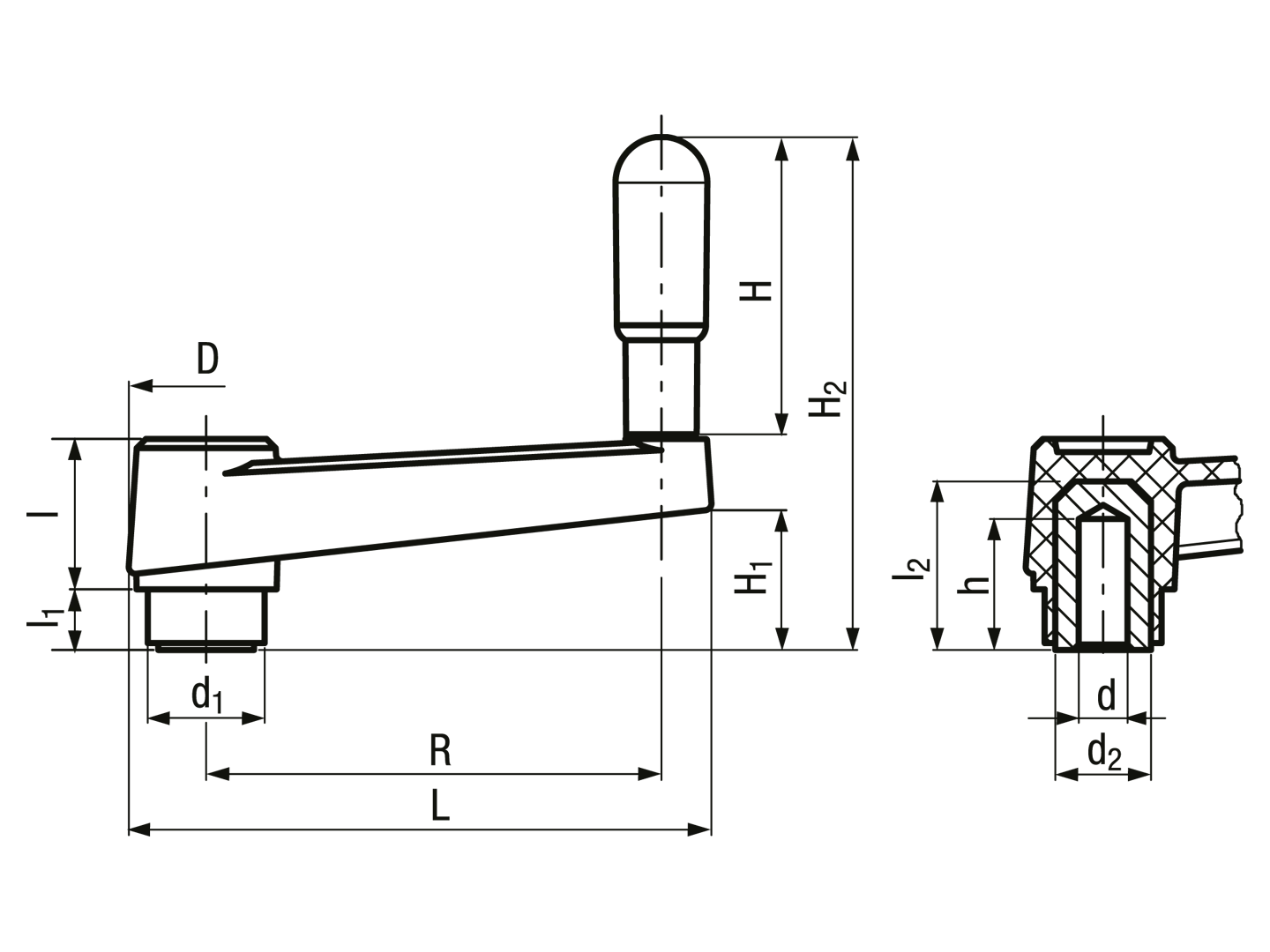 ELESA® MT-AT - Crank handles with revolving handle and black-oxide steel boss