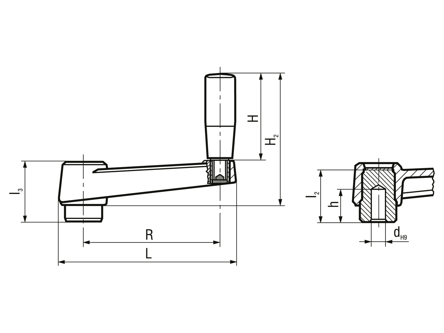 BN 14112ELESA® MT. - Crank handles with revolving handle and black-oxide steel hub with blind hole H9