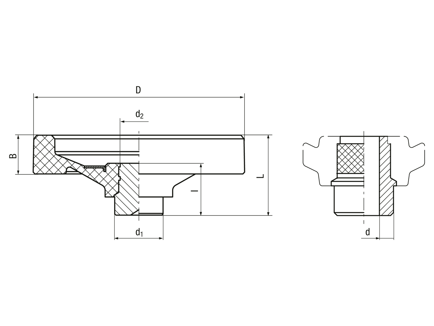 ELESA® VDN.FP-A - Solid handwheels black-oxide steel hub, ring matte anodized aluminum through hole H7