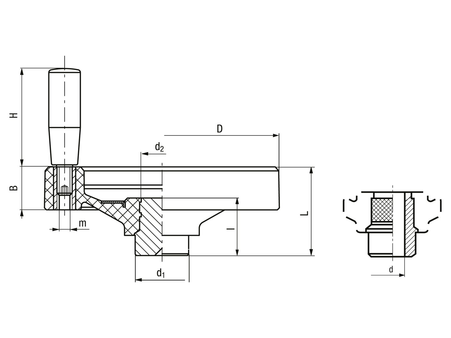BN 14038ELESA® VDN.FP+I-A - Solid handwheels with revolving handle, black-oxide steel hub, ring matte anodized aluminum through hole H7