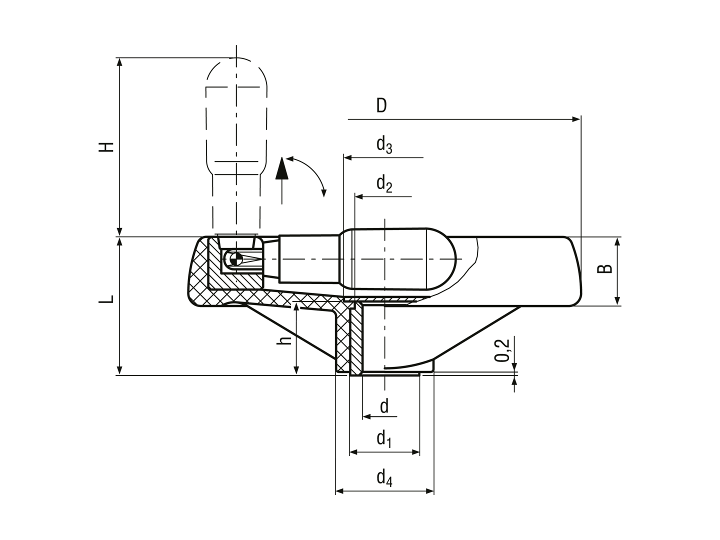 ELESA® VRTP+IR - Spoked handwheels with fold-away handle and black-oxide steel boss