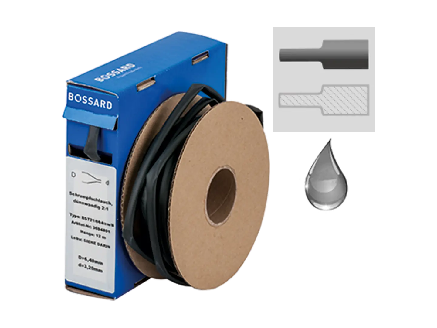 • Flame resistant, adhesive-coated heat shrink tube. The hot melt adhesive ensures an effective, moisture-resistant insulation. The hose is ideal to shrink objects with large diameter differences due to the high shrink ratio.