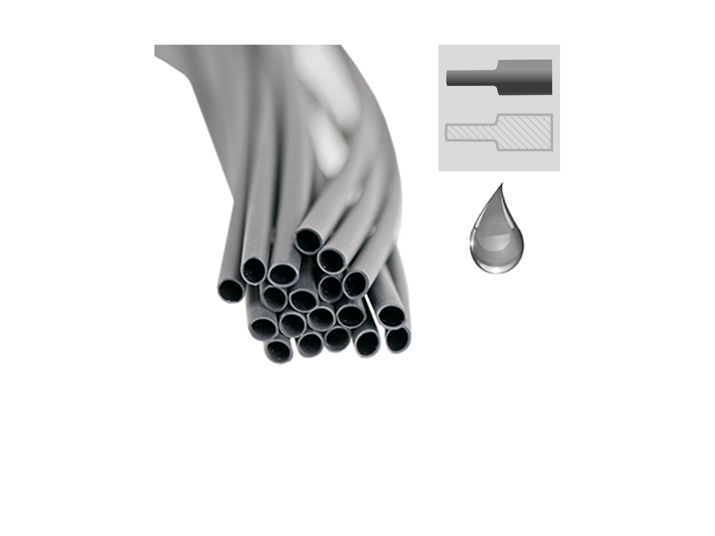 - Flame resistant, adhesive-coated heat shrink tube. The hot melt adhesive ensures an effective, moisture-resistant insulation. The hose is ideal to shrink objects with large diameter differences due to the high shrink ratio.