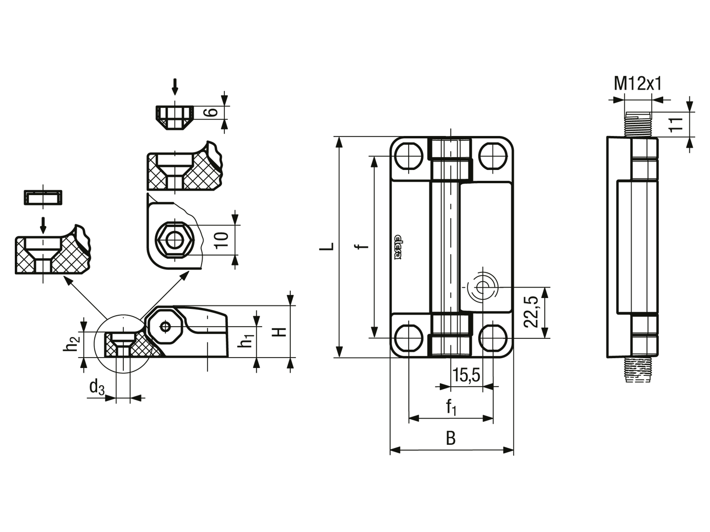 ELESA® CFSW-C-A - Hinges with built-in safety multiple switch "8-pole male connector top axial output"