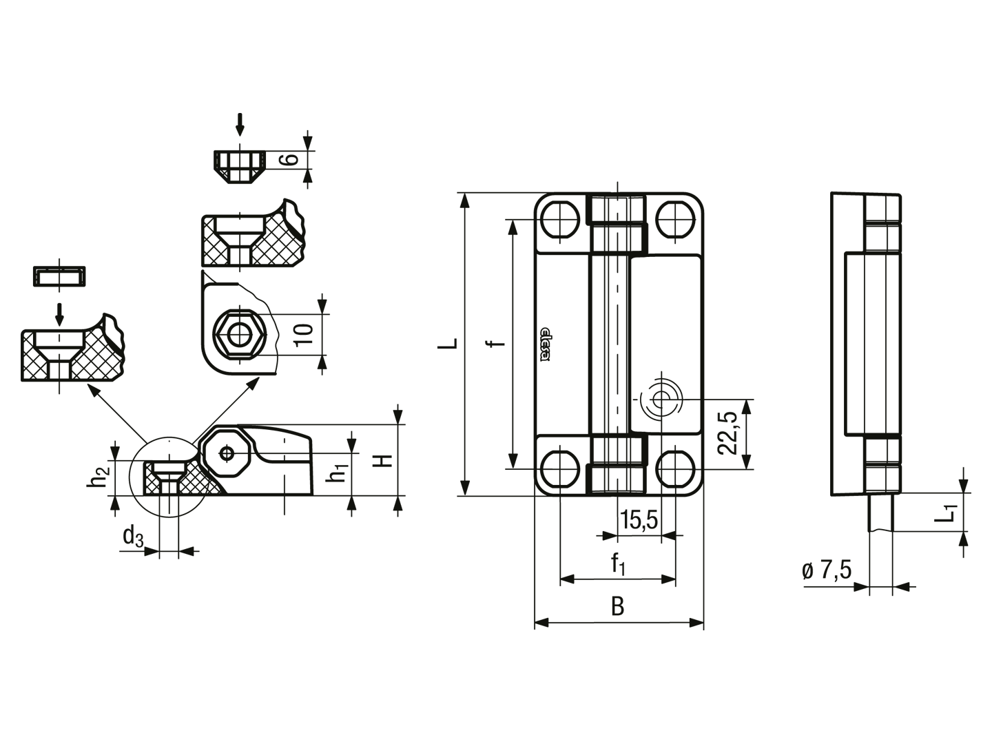 ELESA® CFSW-F-C - Hinges with built-in safety multiple switch 2 or 5 m cable, 8 conductors, bottom axial output