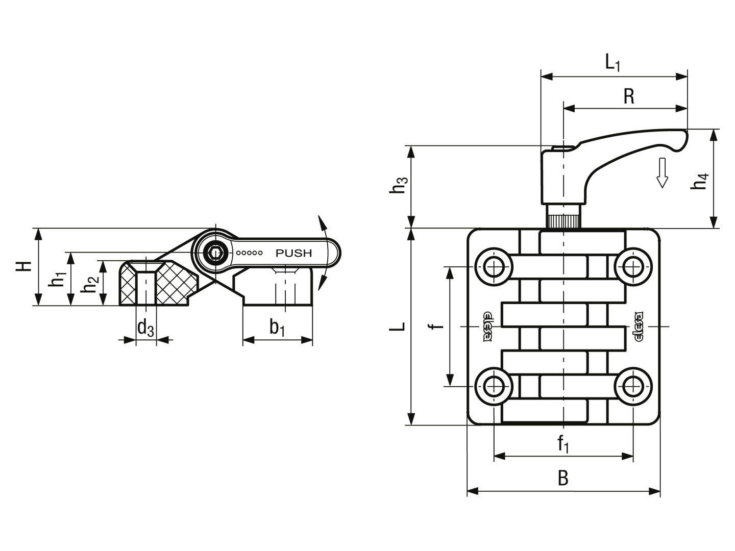 Hinges with friction brake with pass-through holes for countersunk head screws
