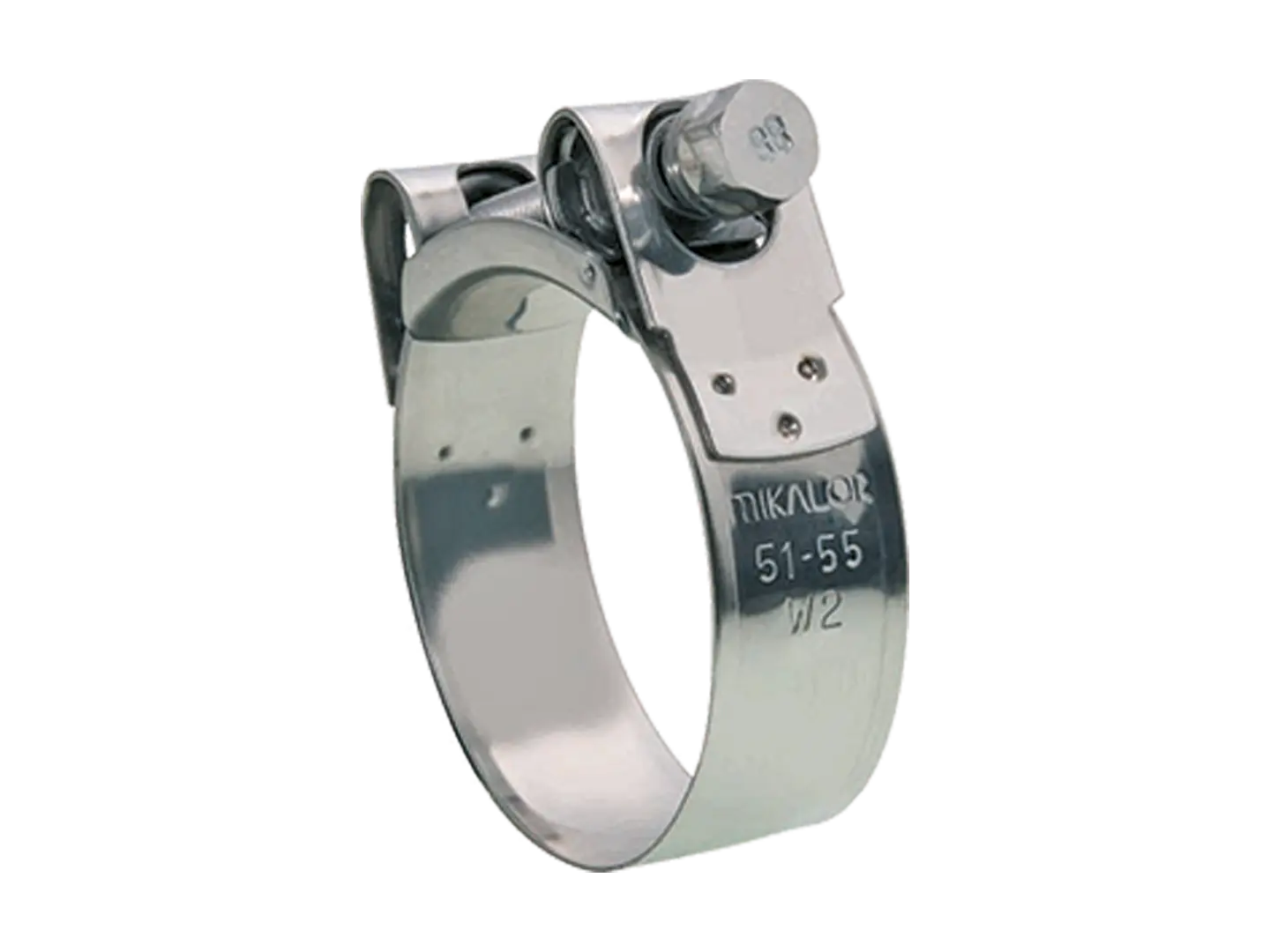 DescriptionProduct featuresBand and housing: stainless steel X6Cr17 (1.4016 / AISI-430) Screw: steel 8.8 zinc plated Nut: steel class 8 zinc platedVariants