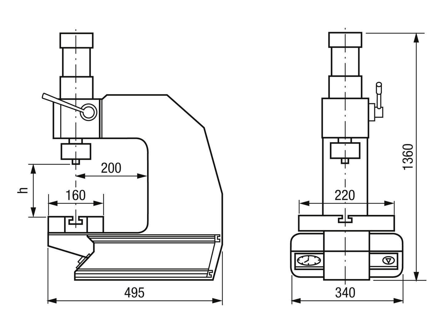 - Working area (depth): 200 mm (center-line spacing between cylinder and C frame)