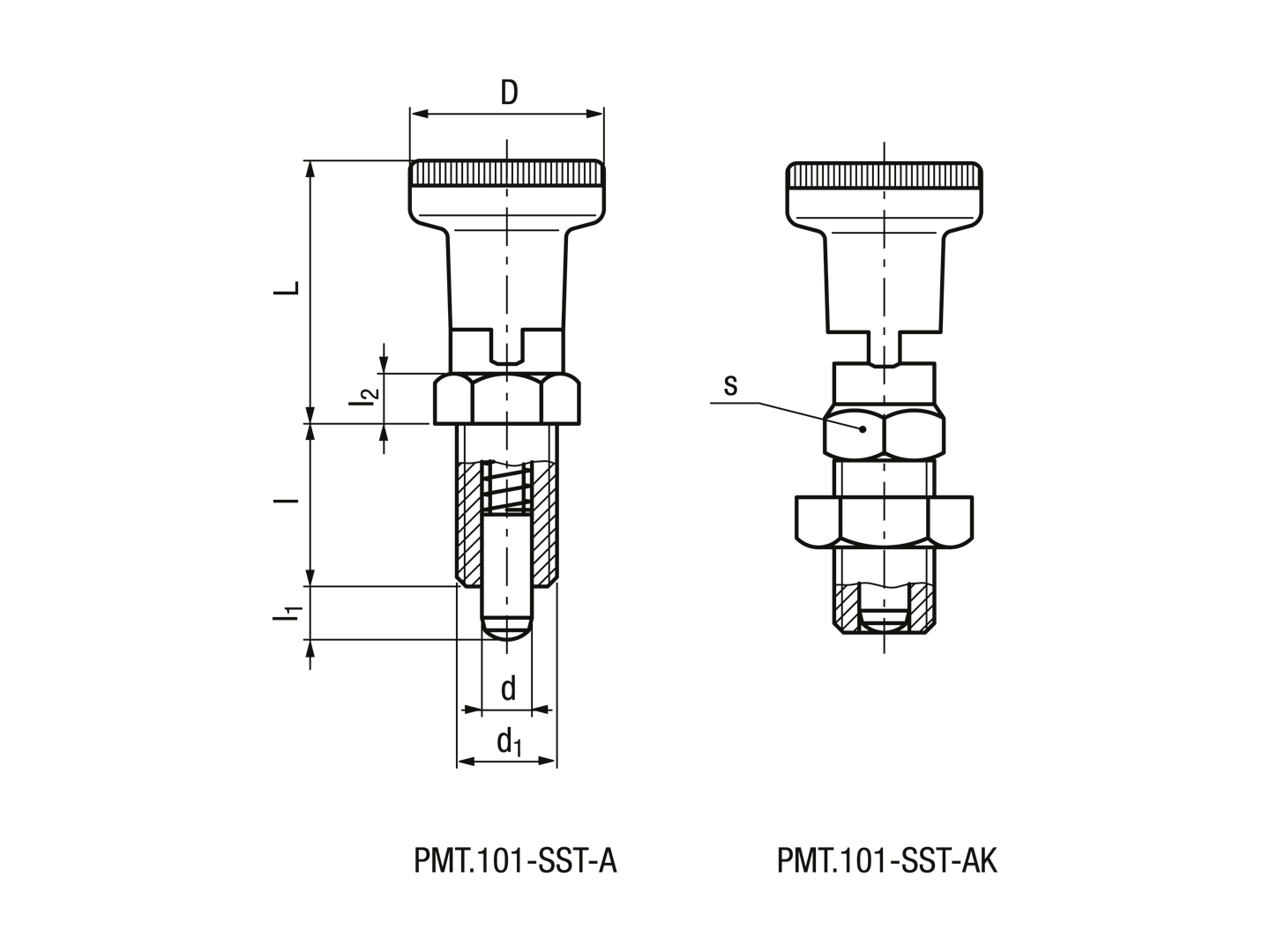 ELESA® PMT.101-SST-A/AK - Indexing plungers with hex collar and locking pin stainless steel