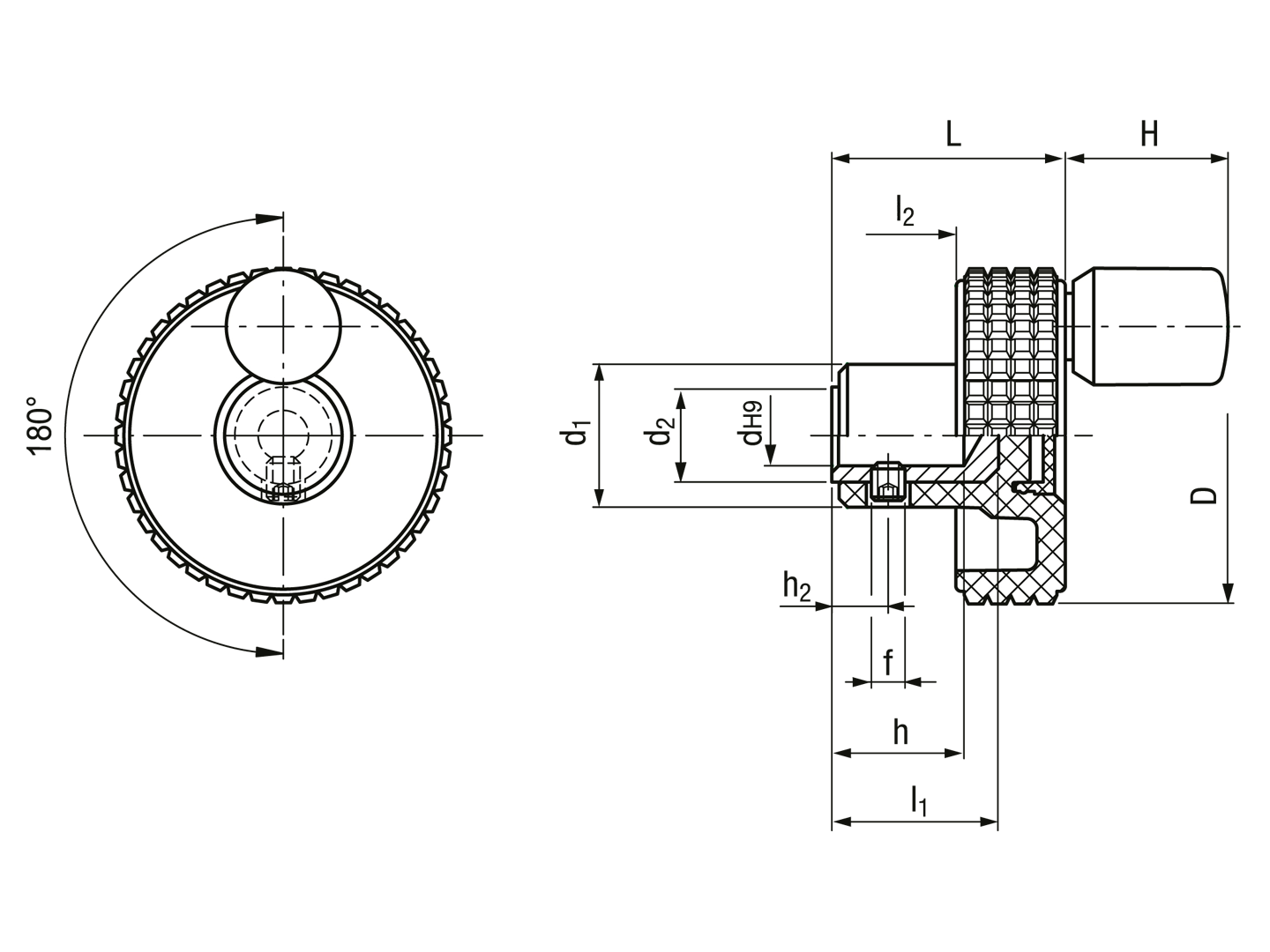 BN 20736ELESA® MBT+I Color - Diamond cut knurled knobs with revolving handle, brass boss with plain blind hole