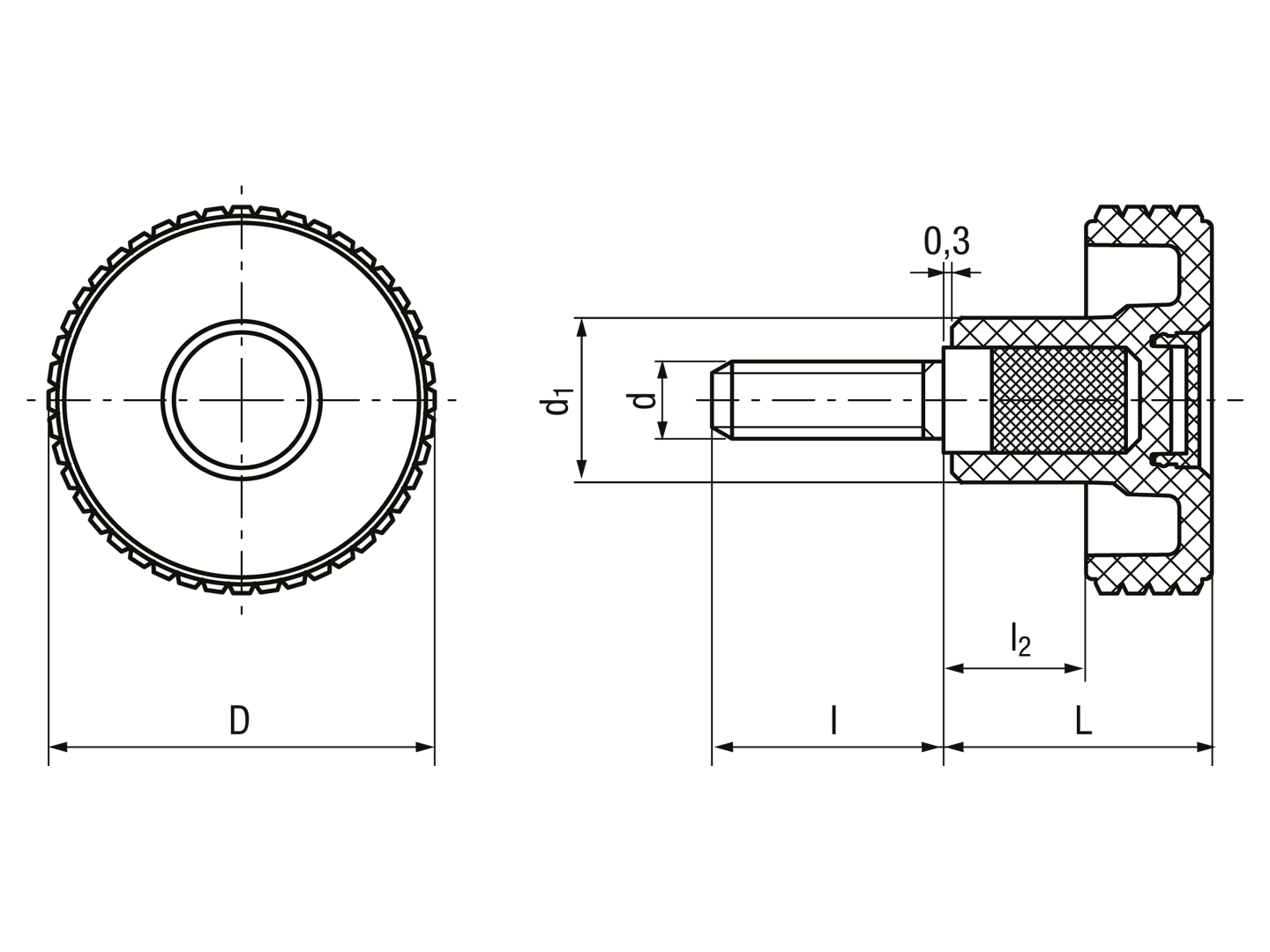 BN 14177ELESA® MBT.p - Diamond cut knurled knobs with threaded stud, steel zinc plated