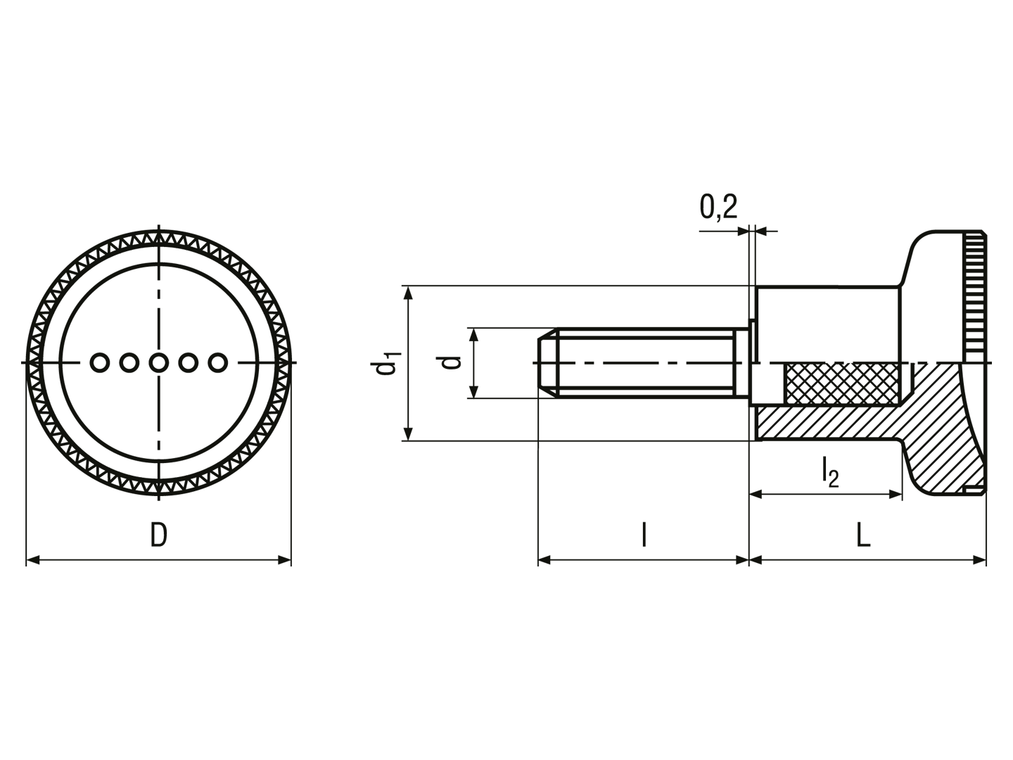 BN 1448ELESA® ERGOSTYLE EKK.p - Knurled knobs with threaded stud, steel zinc plated