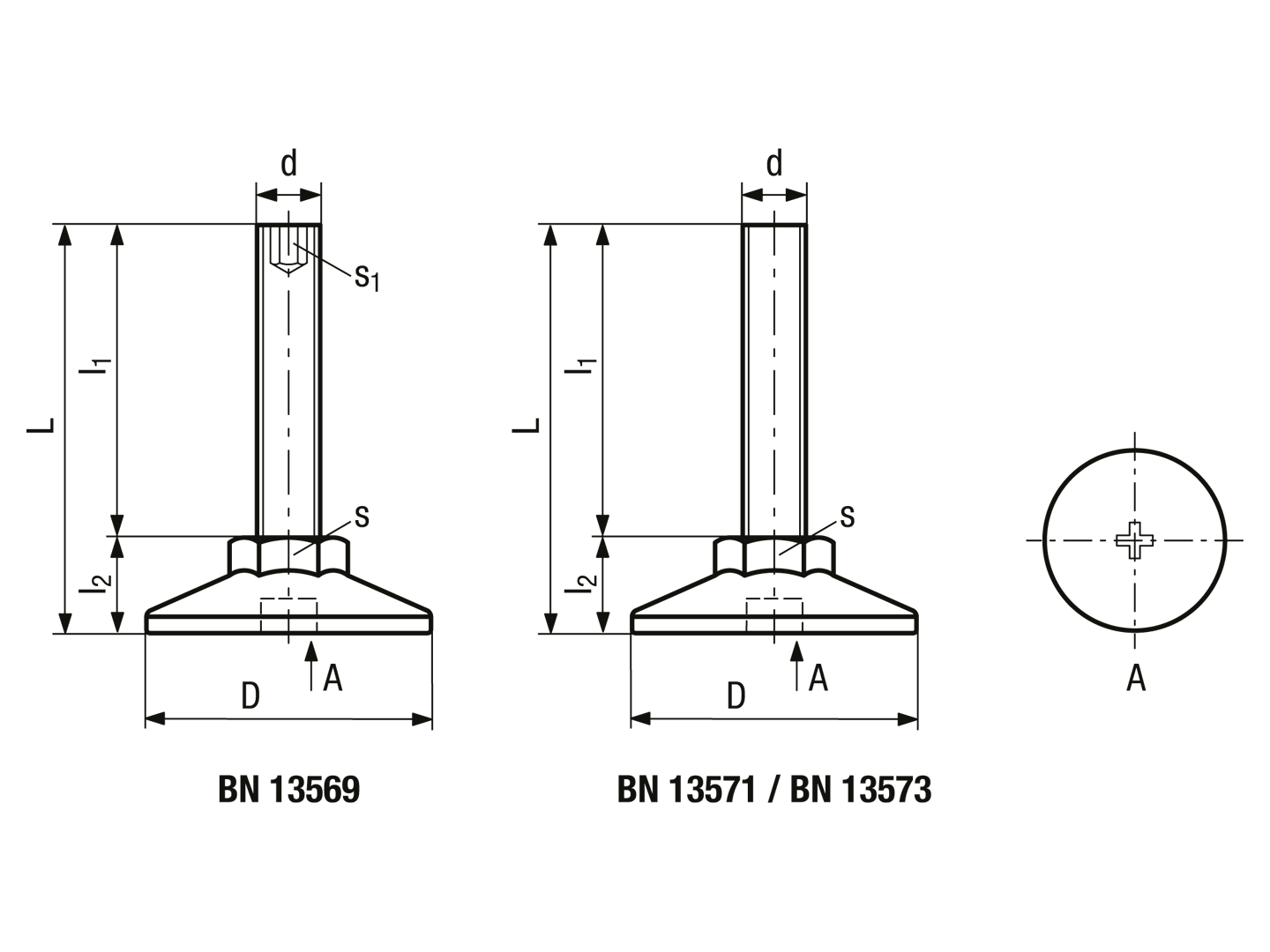 ELESA® LX-HS - Levelling elements with threaded bolt, without non slip rubber insert Threaded bolt: steel zinc plated with hexagon socket at the upper end