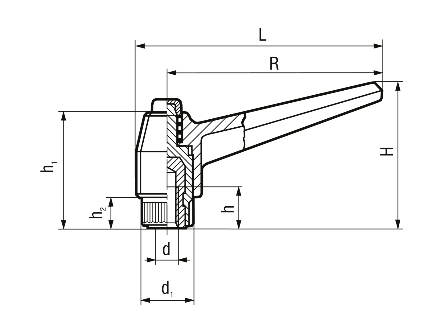 BN 14193ELESA® MRX. - Adjustable handles with retaining pin, brass boss and tapped blind hole