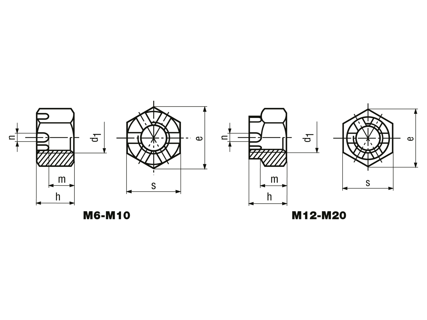 Hex slotted and castle nuts