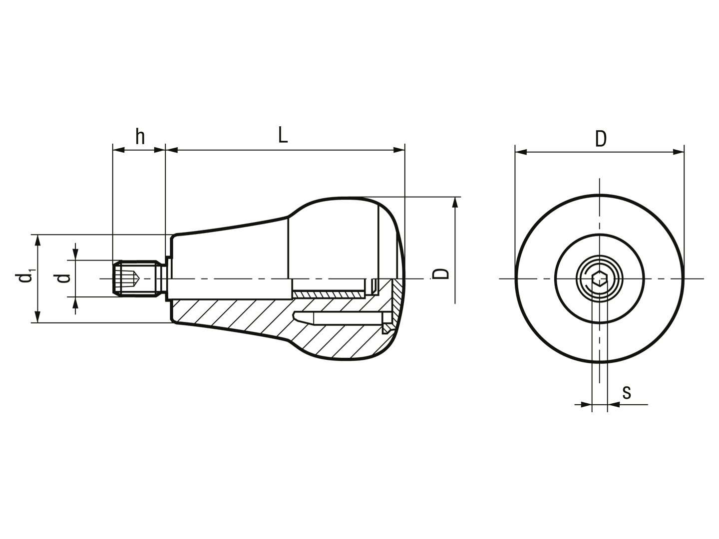 Revolving handles with threaded stud and hex socket, steel zinc plated